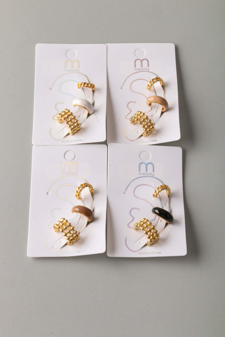 Beaded Chain Mix Cuff Earrings Set