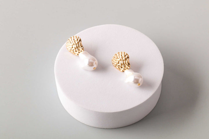 Textured Post Oyster Pearl Drop Earring