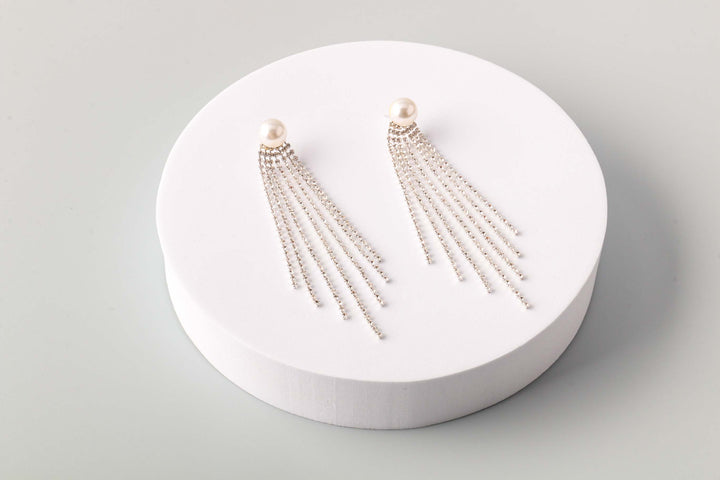 Pendiente de cascada con diamantes de imitación y perlas