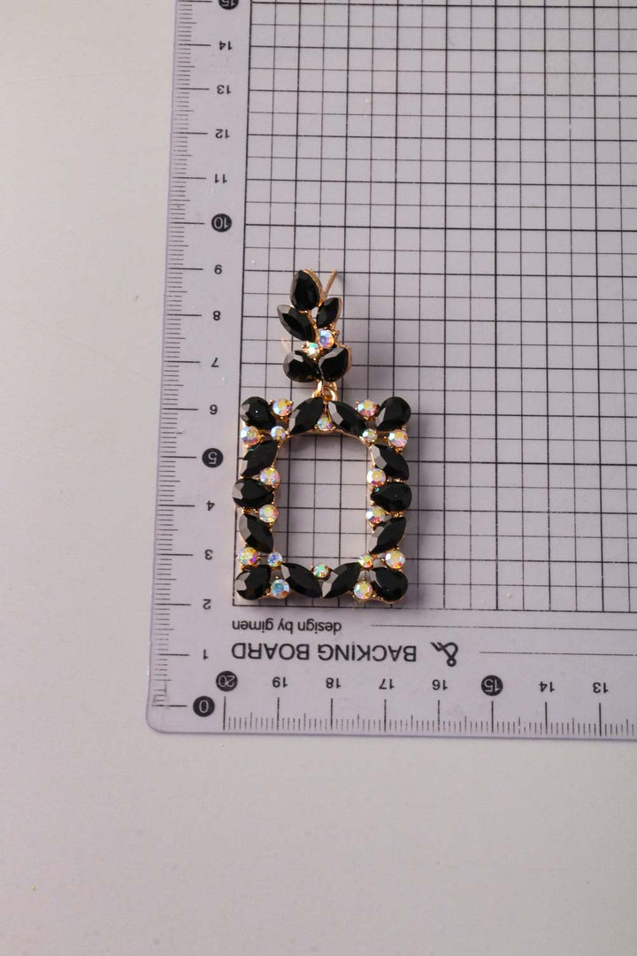 Pendiente con marco cuadrado y hojas de diamantes de imitación