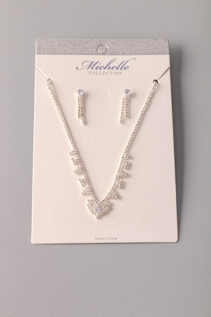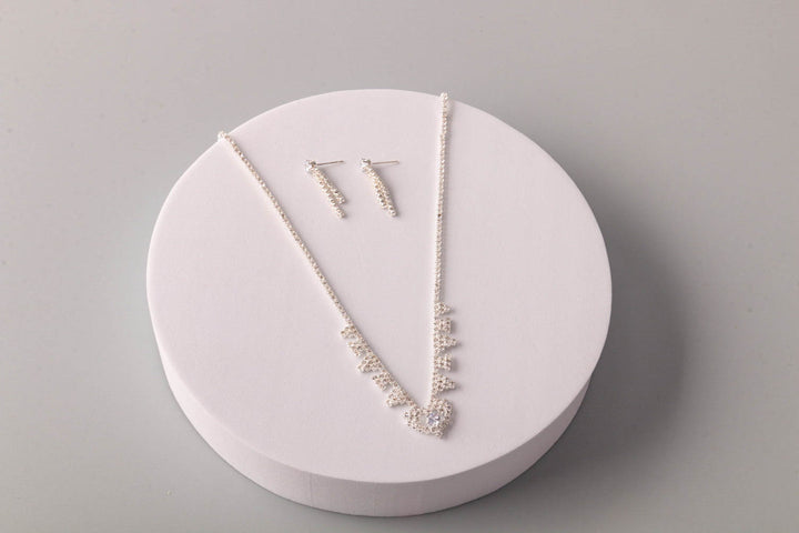 Conjunto de collar y pendientes con forma de flecha y corazón de diamantes