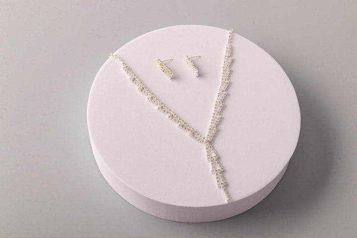 Conjunto de collar y pendientes con lazo y flecha de diamantes