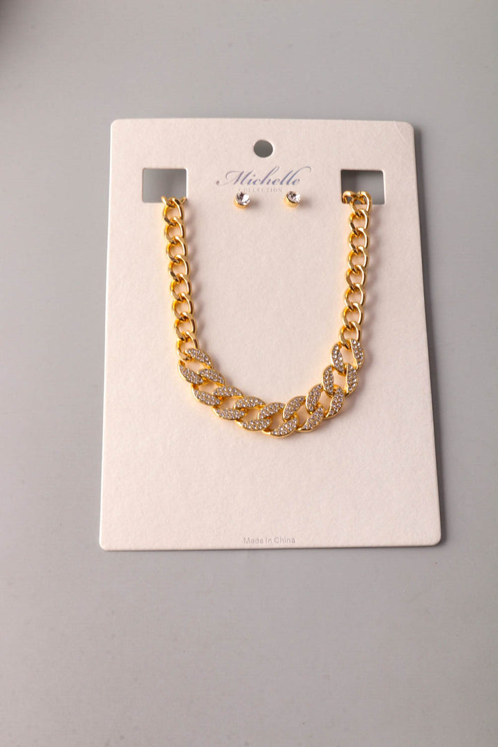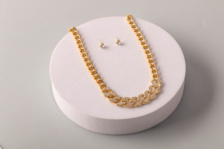 Rhinestone Weighted Chain Necklace Set