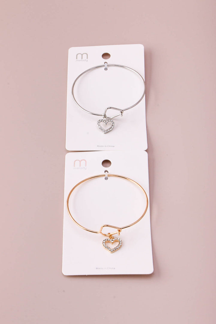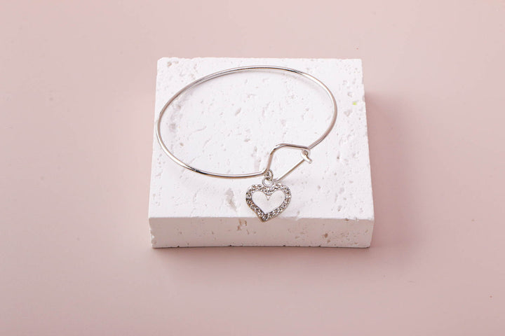 Heart Charm Hoop Bangle Bracelet