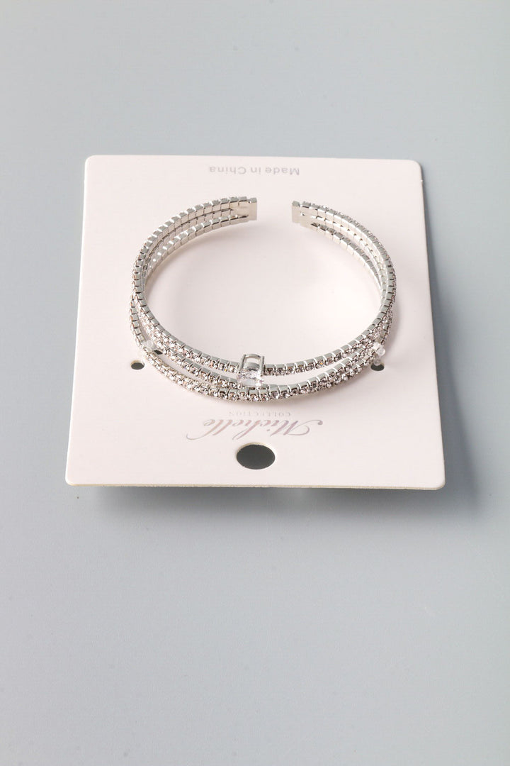 Rhinestone Diamond Crossed Cuff Bracelet