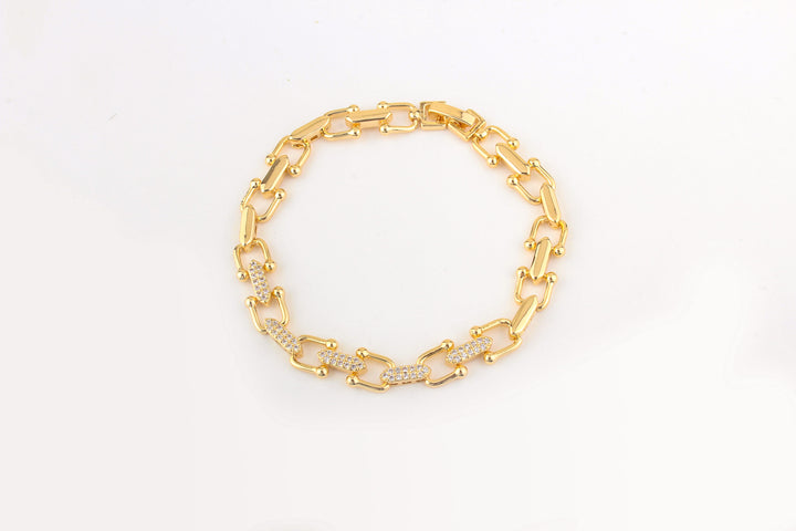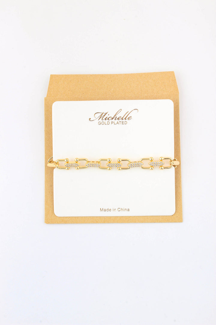 Plated Rhinestone Horseshoe Chain Bracelet