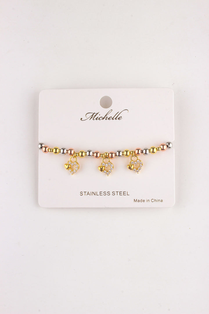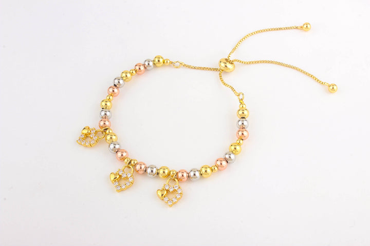 Rhinestone Hearts Beaded Adjustable Bracelet