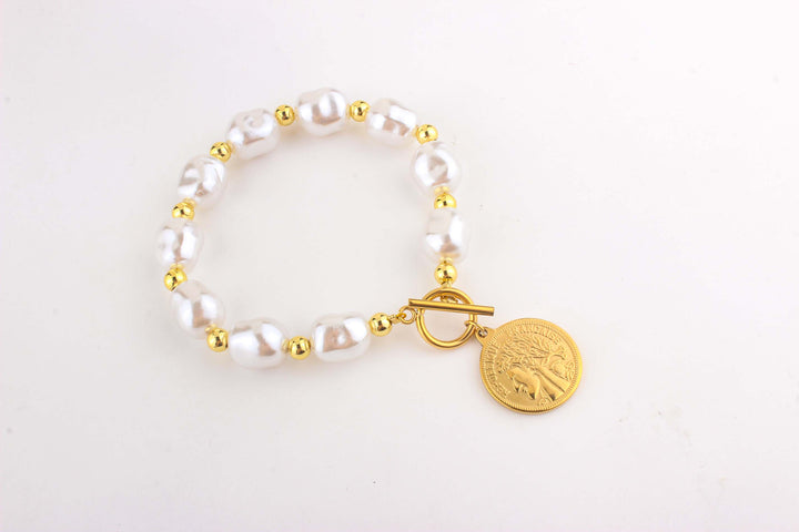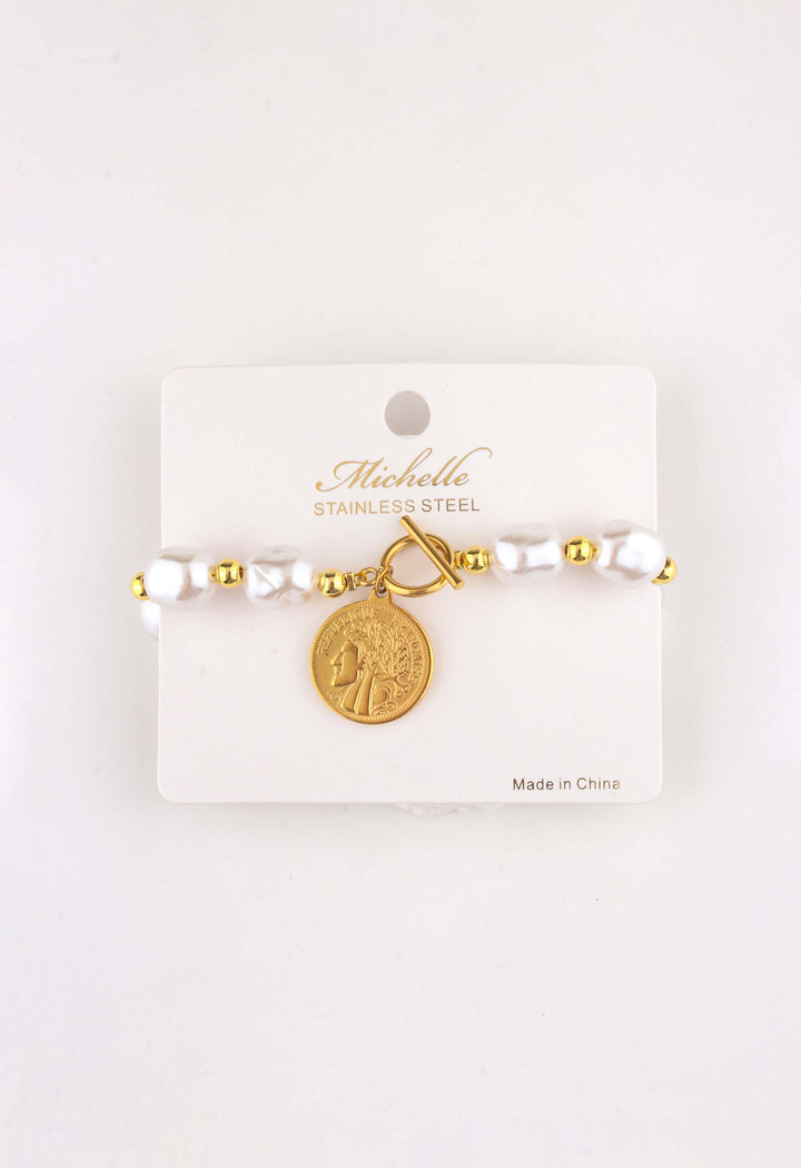 Coin Toggle Pearl Bead Bracelet