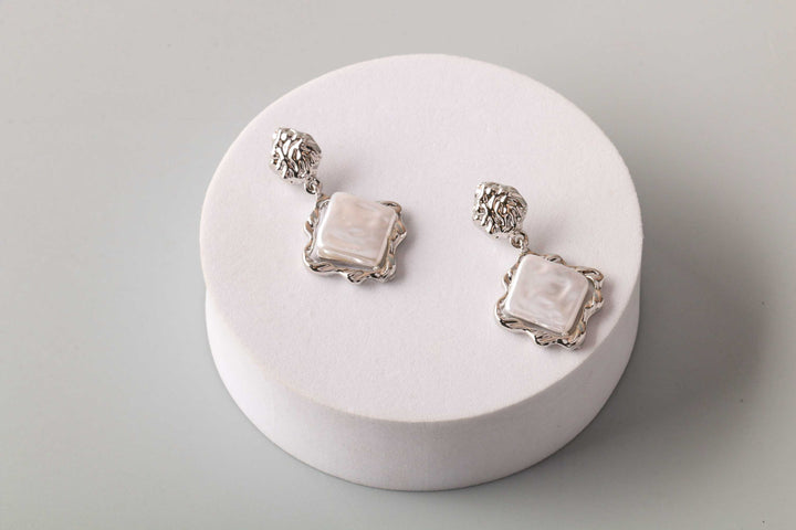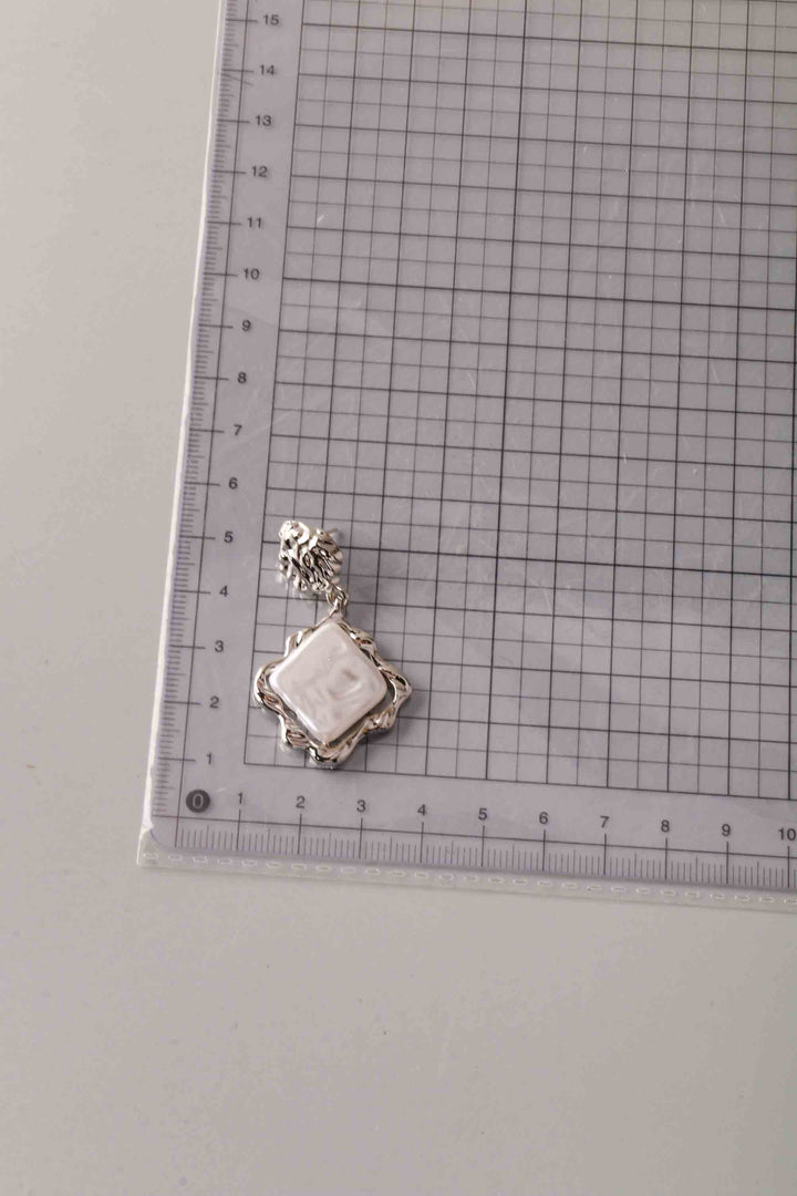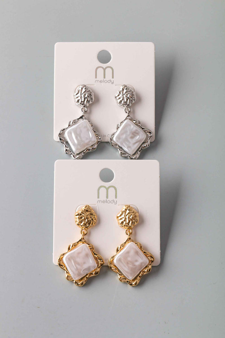 Diamond Pearl Hammered Frame Earring