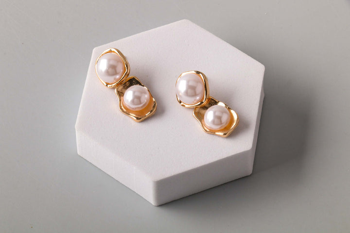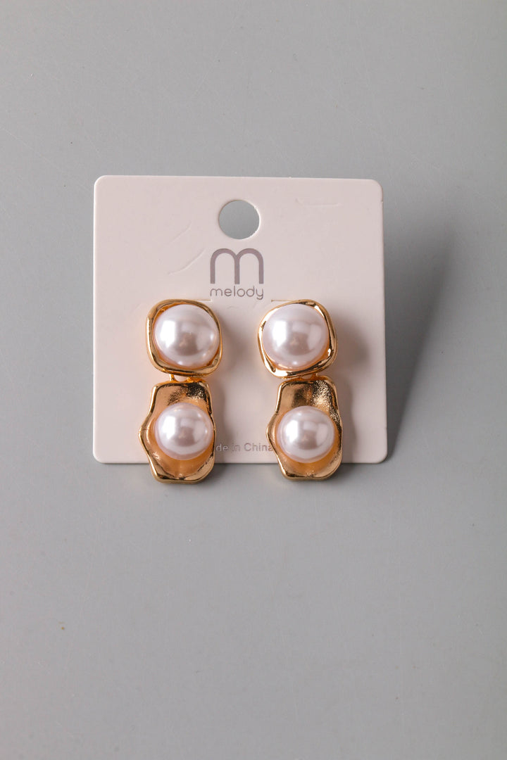 Pearl Metal Cupped Drop Earring