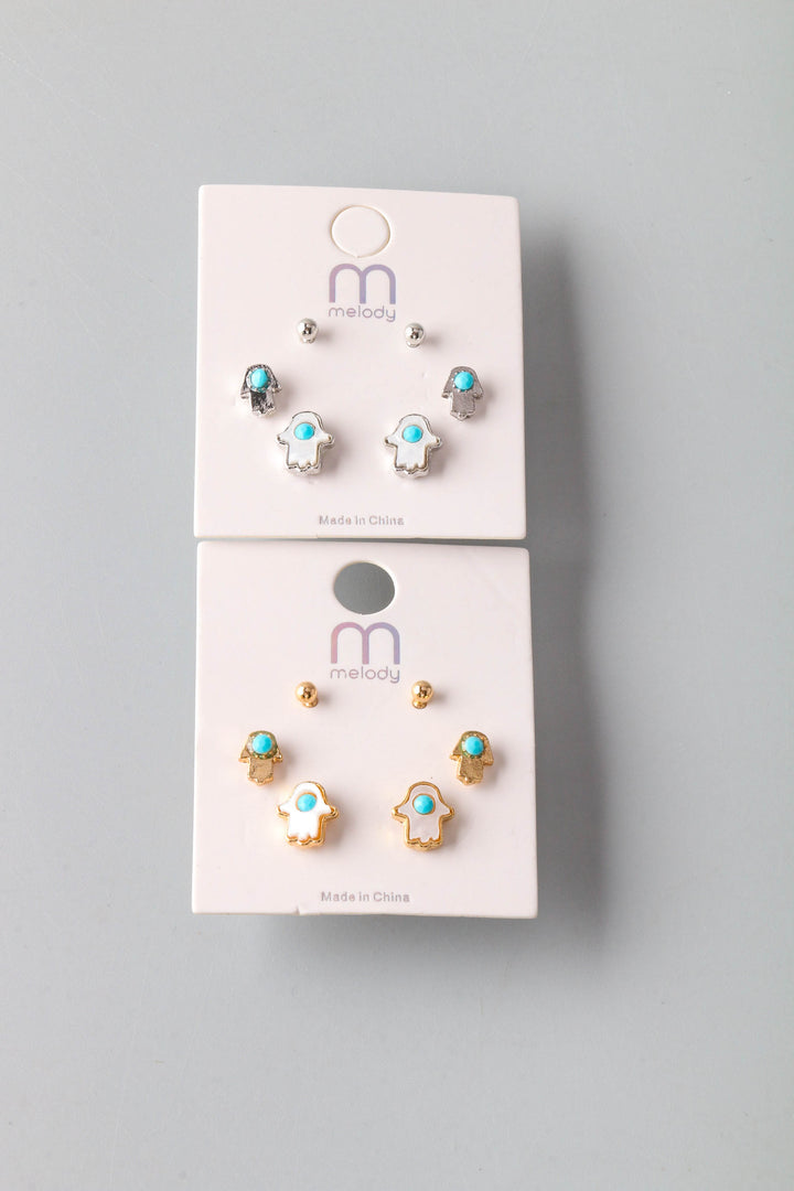 Bead Hand Stud Earring Set