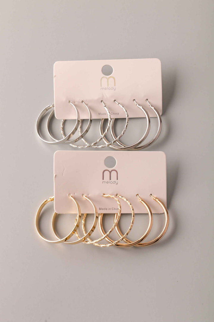 Mix Texture Hoop Earring Set