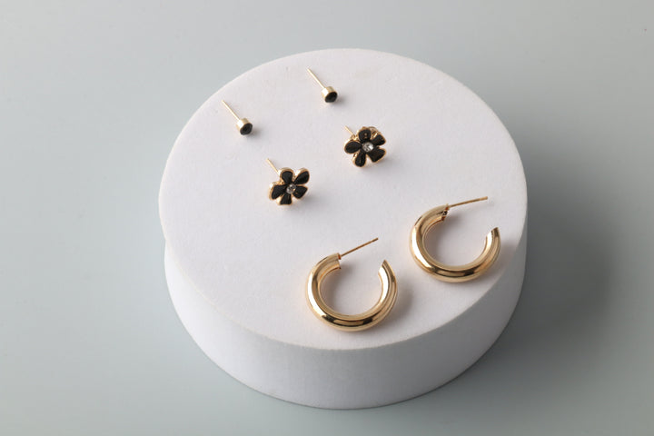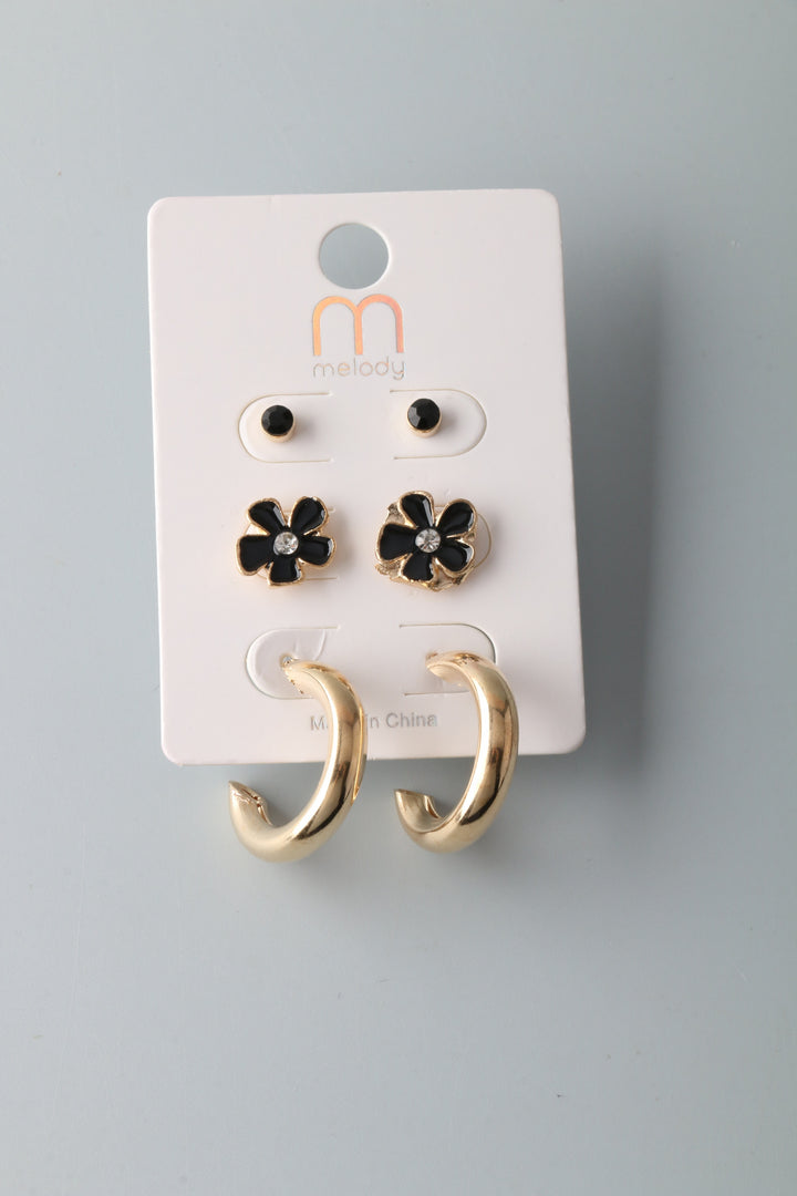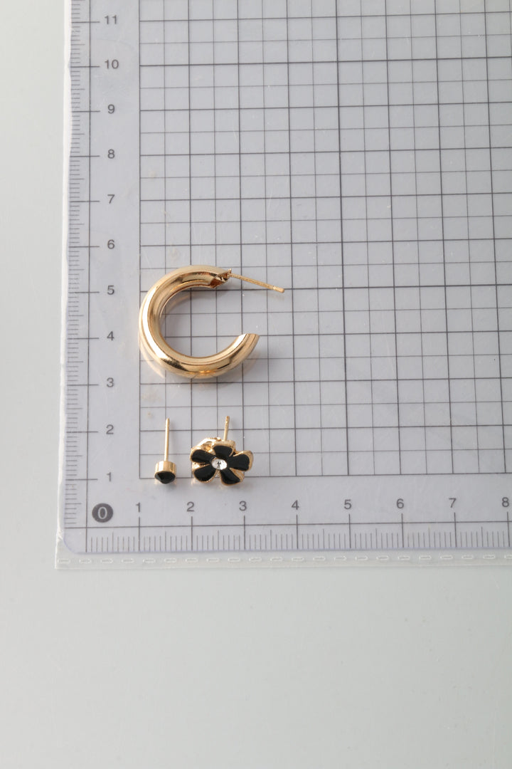 Chunky Hoop Flower Earring Set