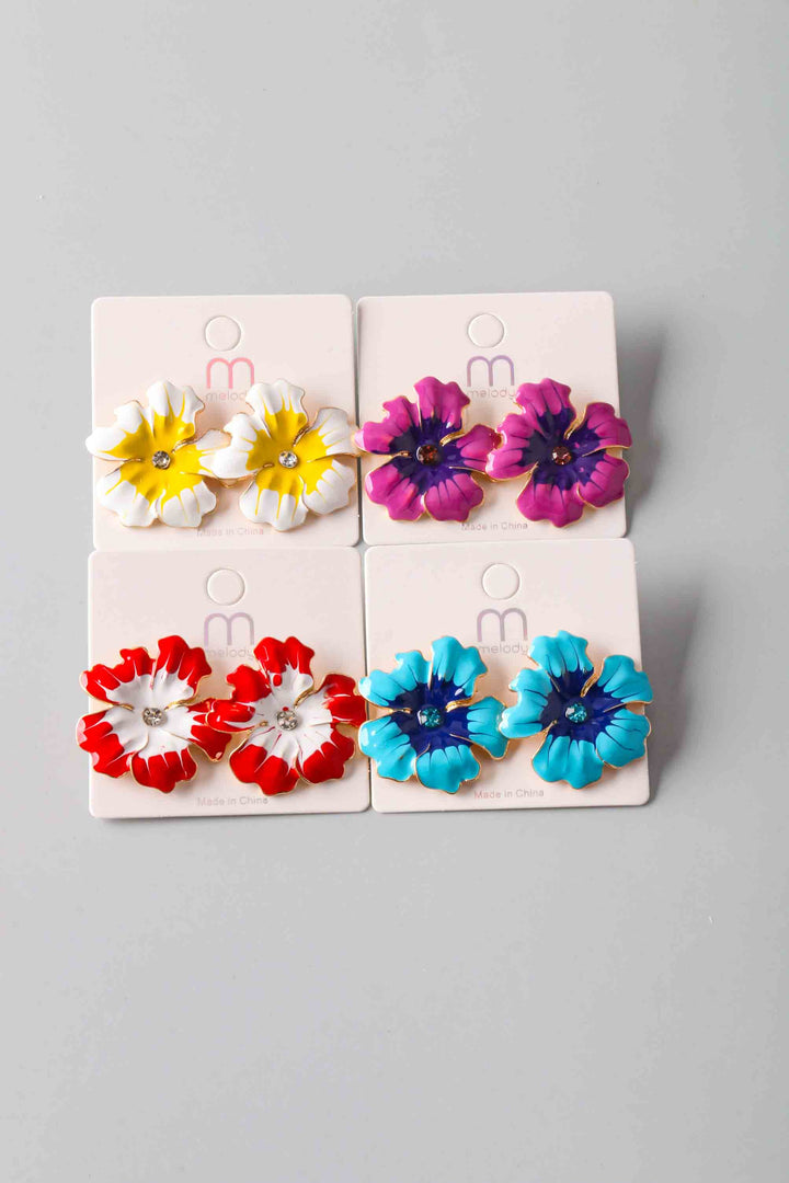Rhinstone Painted Hibiscus Earring