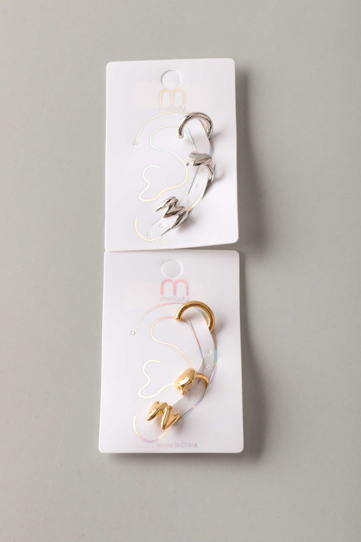 Pointed Heart Cuff Earrings Set