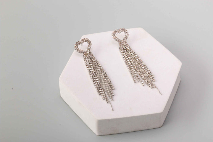 Rhinestone Heart Waterfall Earring