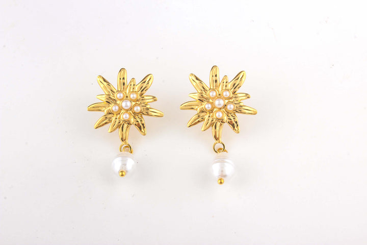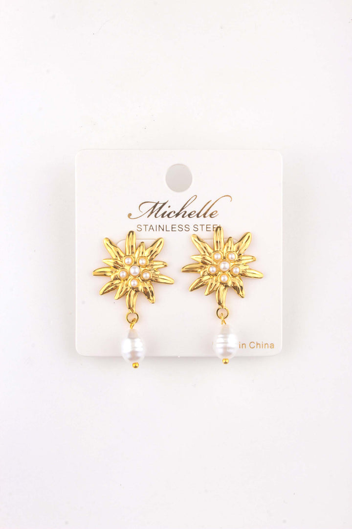 Steel Spike Flower Pearl Drop Earring
