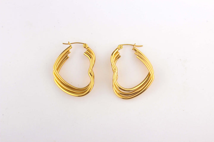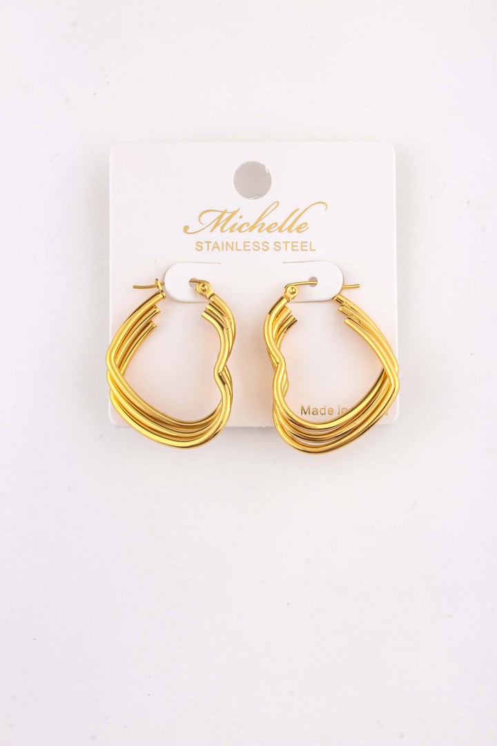 Steel Triple Heart Leverback Hoop Earring