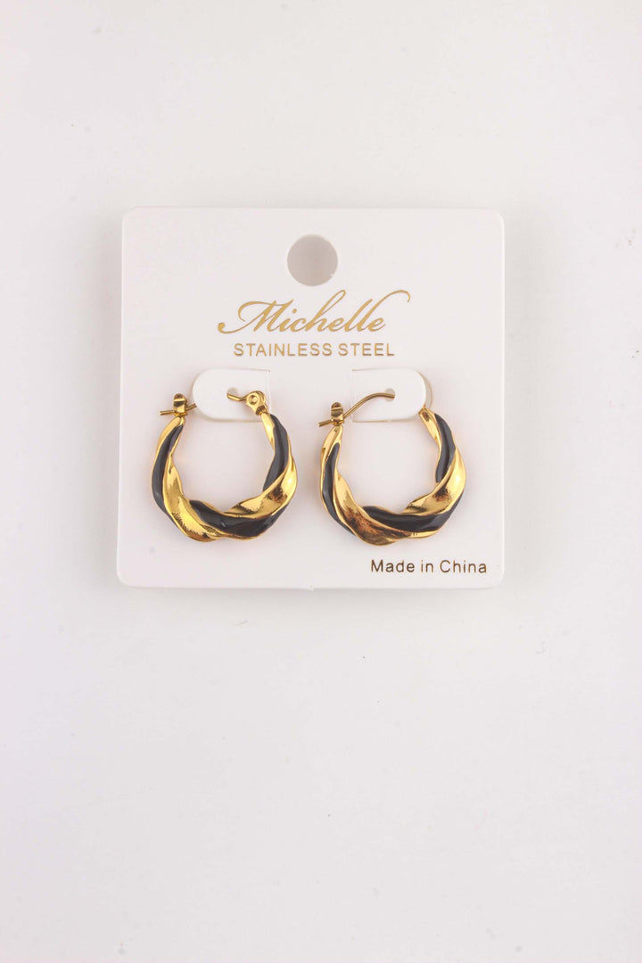 Steel Enamel Twisted Huggie Earring