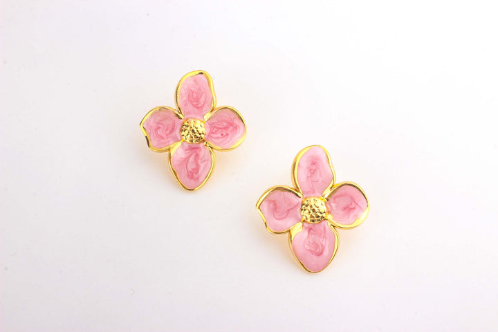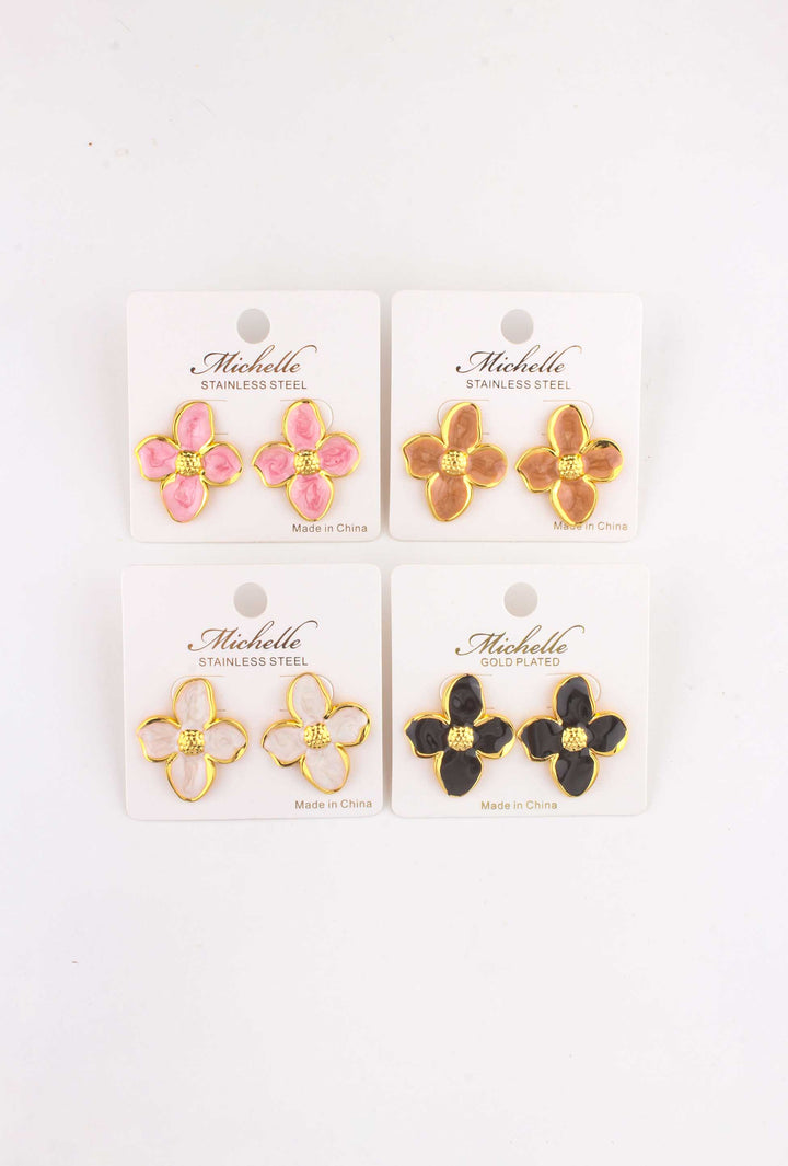 Plated Enamel Orchid Post Earring