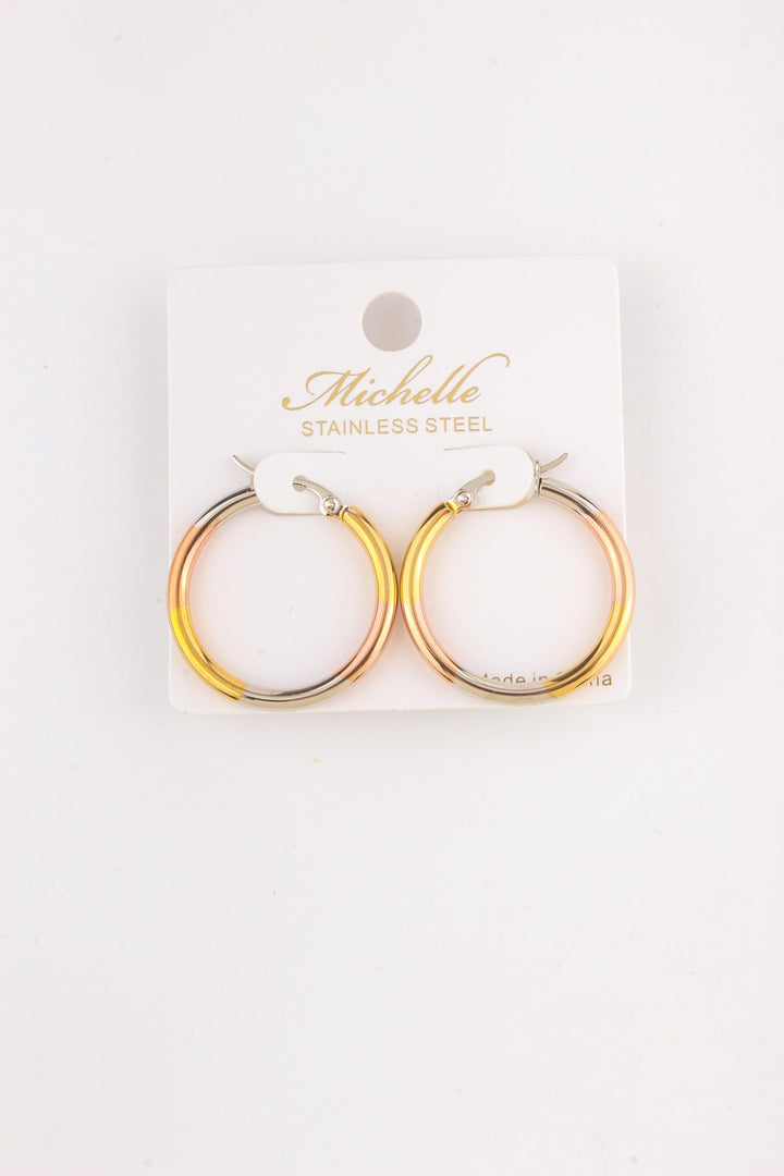 Steel Metallic Block Hoop Earring