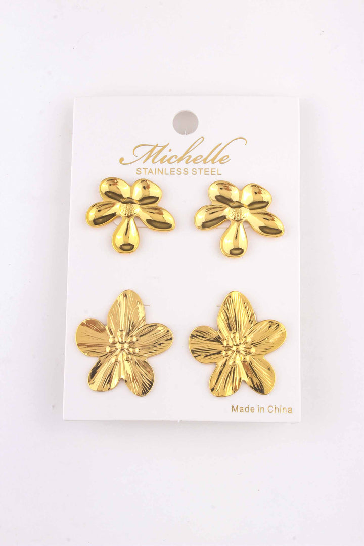 Steel Dual Texture Flower Post Earring