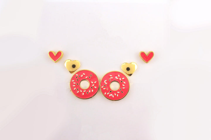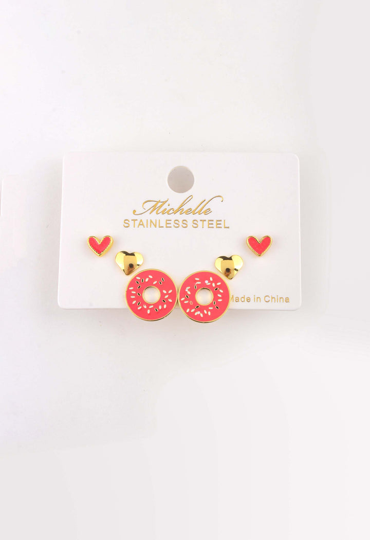 Steel Donut Heart Earring Set