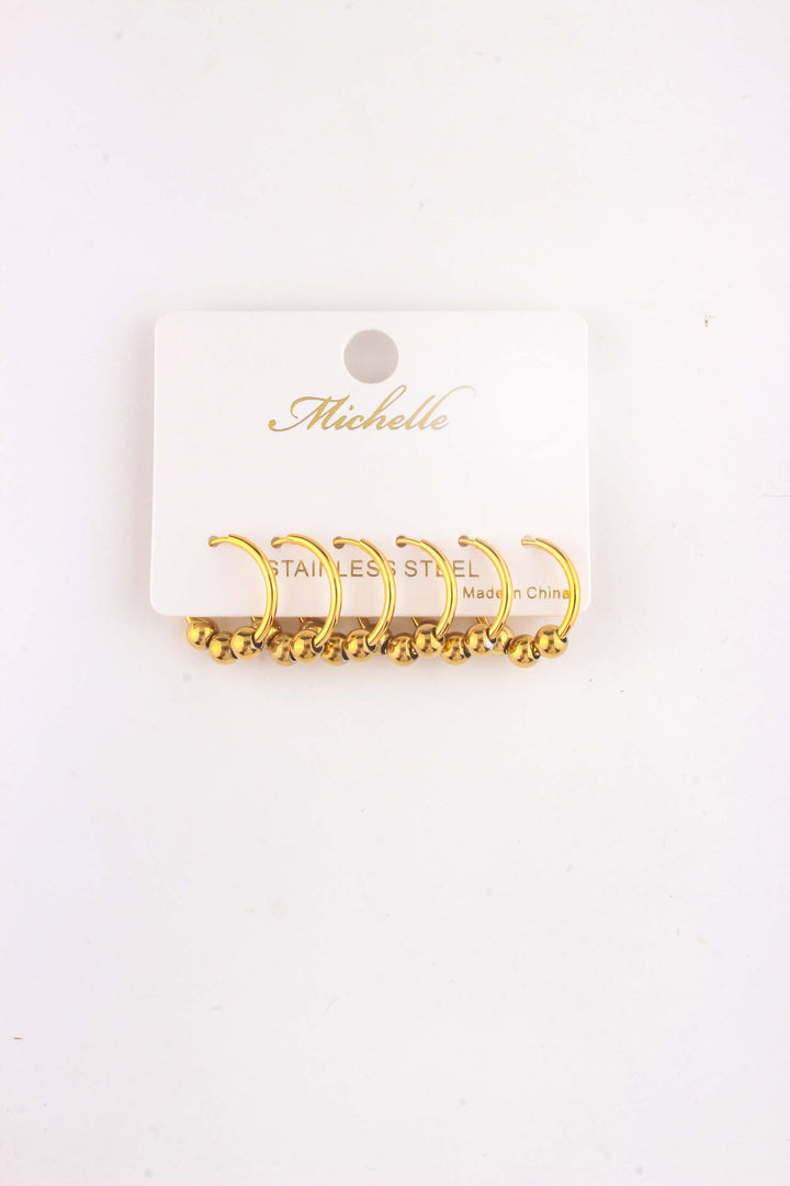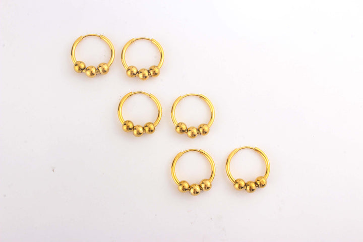 Steel Beaded Huggie Earring Set