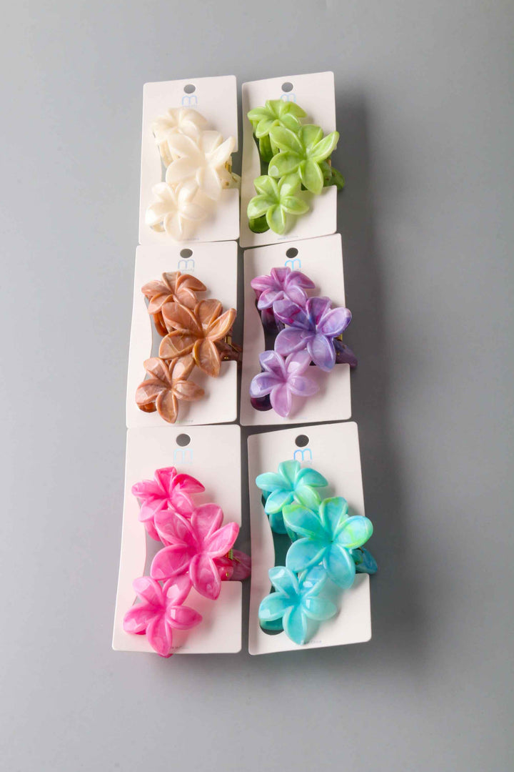 Marbled Triple Plumeria Claw Clip