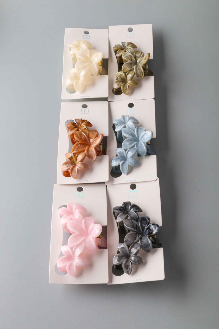 Marbled Triple Plumeria Claw Clip