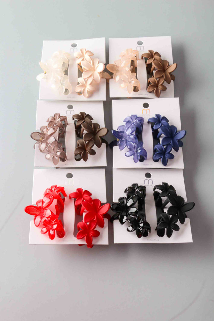 Mixed Triple Plumeria Claw Clips