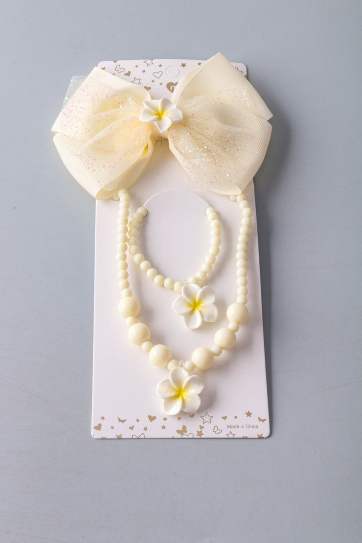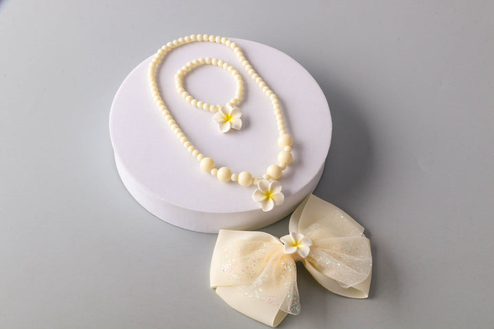 Plumeria Beaded Bow Jewelry Hair Set
