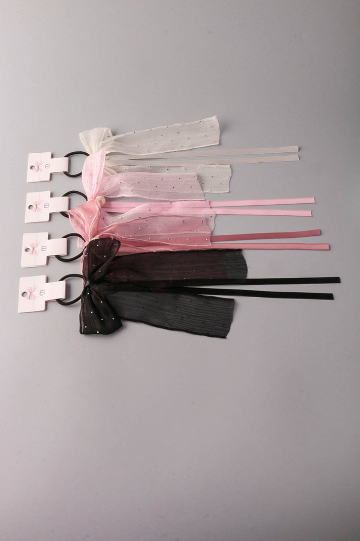 Rhinestone Sheer Bow Ribbon Hair Tie
