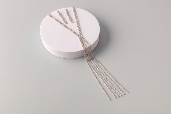 Rhinestone Lariat Tassel Necklace Set