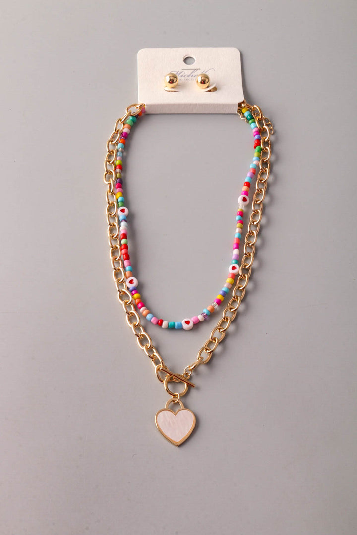 Heart Toggle Chain Beaded Necklace Set