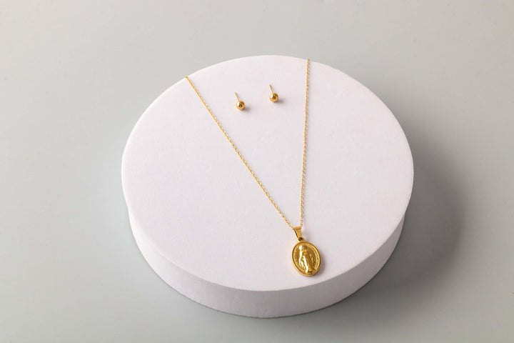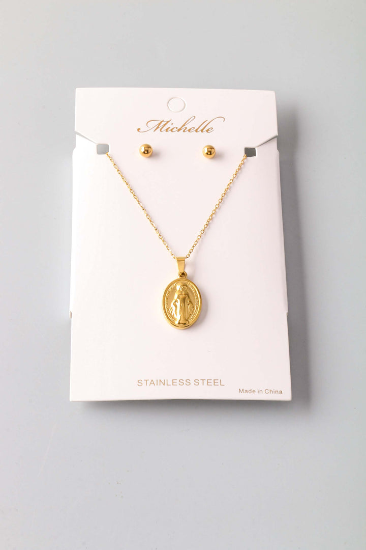 Steel Mary Coin Necklace Set