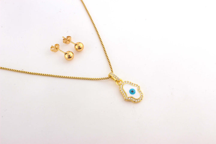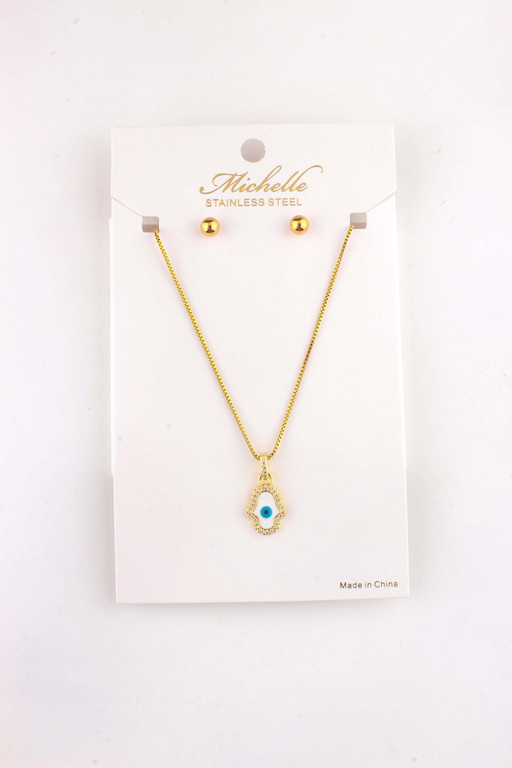 Steel Hand Eye Pendant Necklace Set