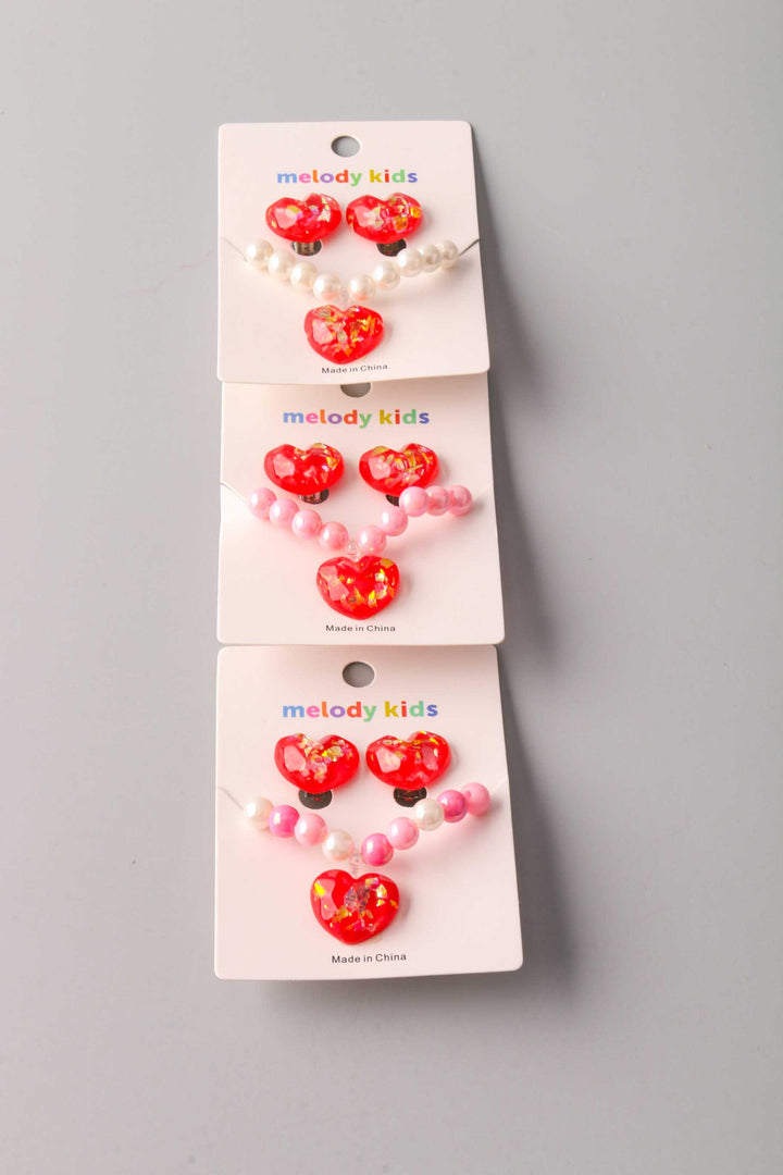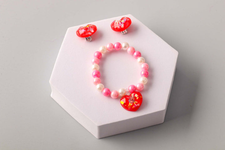 Heart Bead Bracelet Earring Set