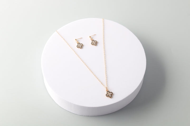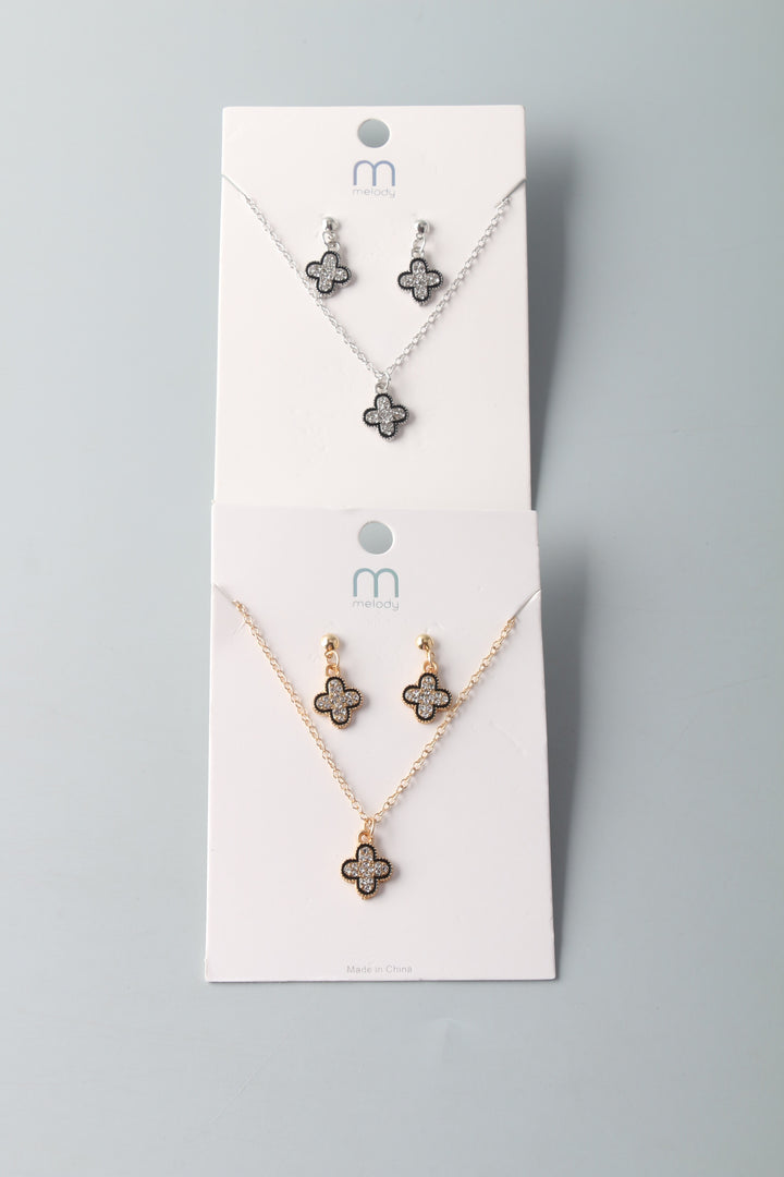 Rhinestone Outlined Clover Necklace Set